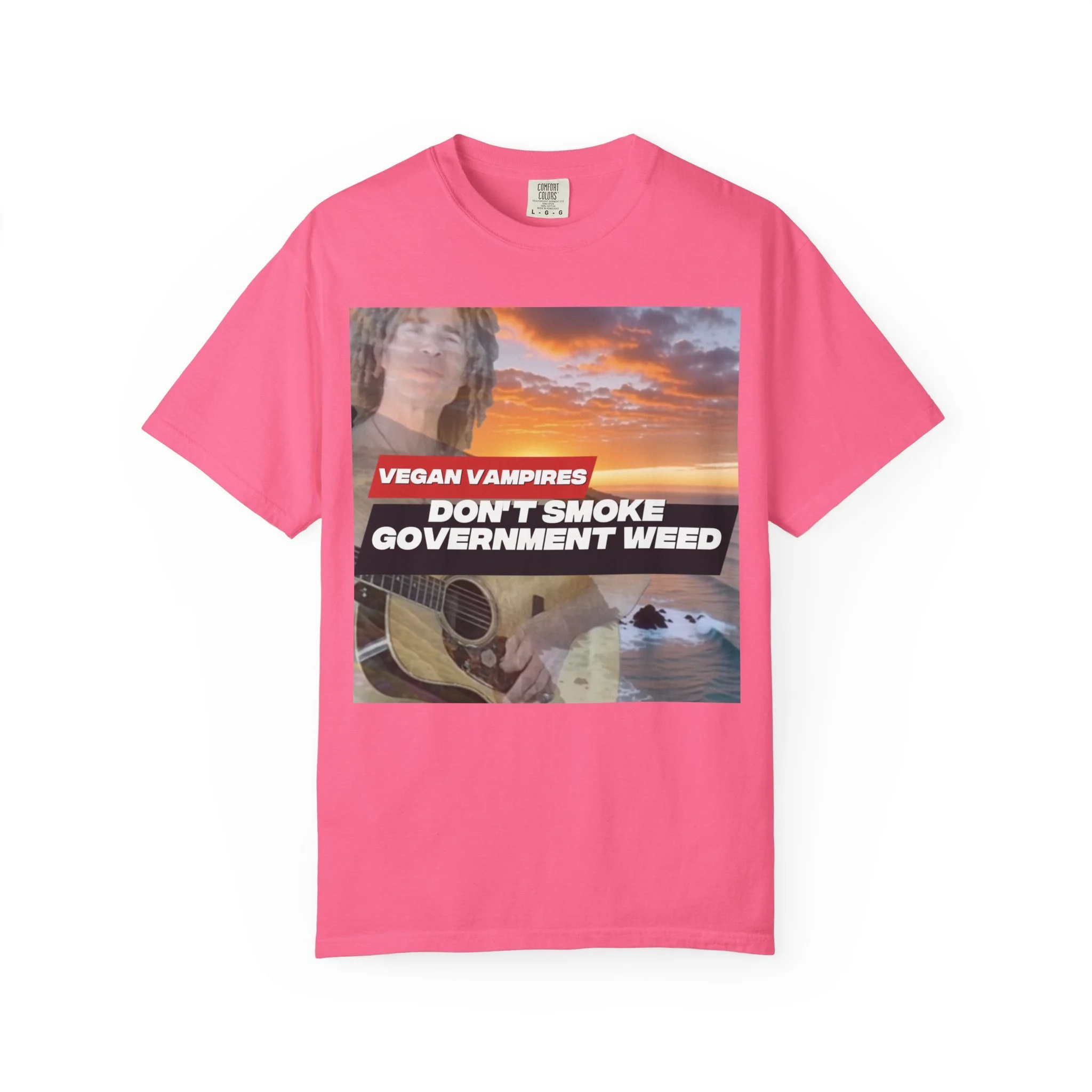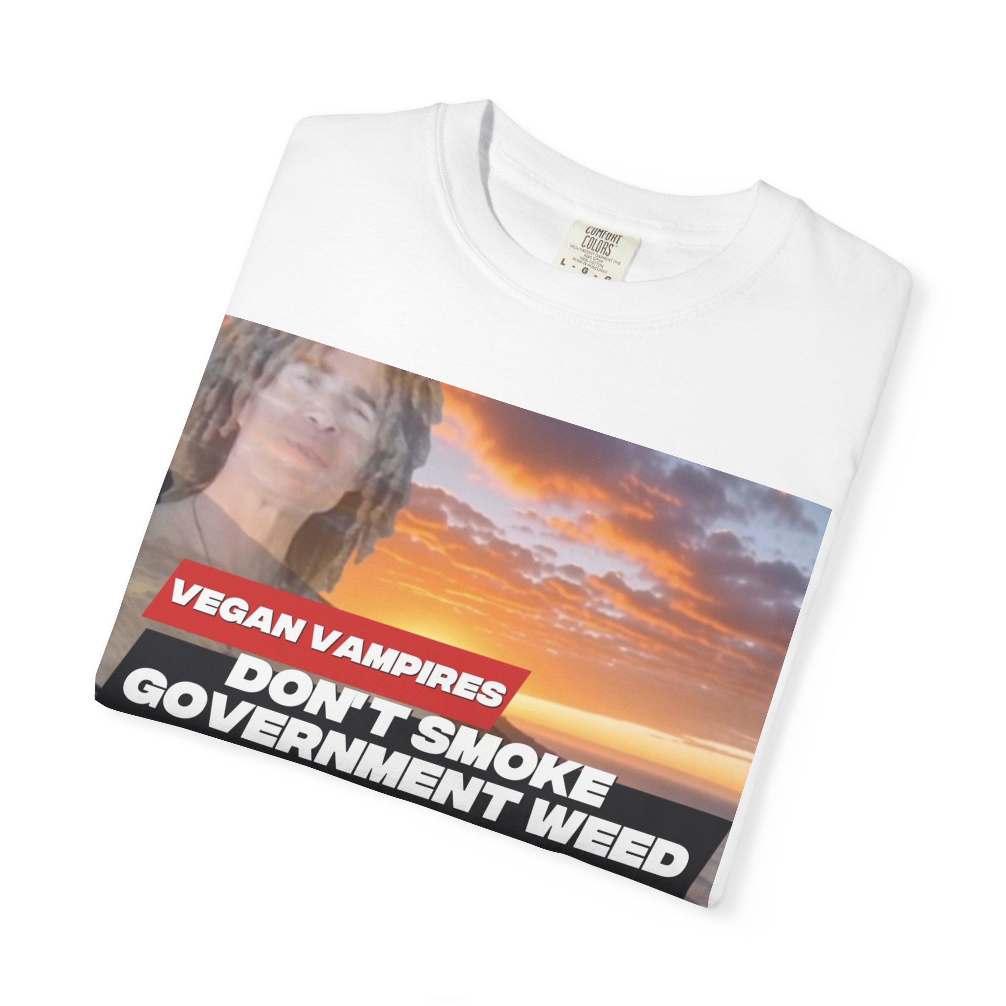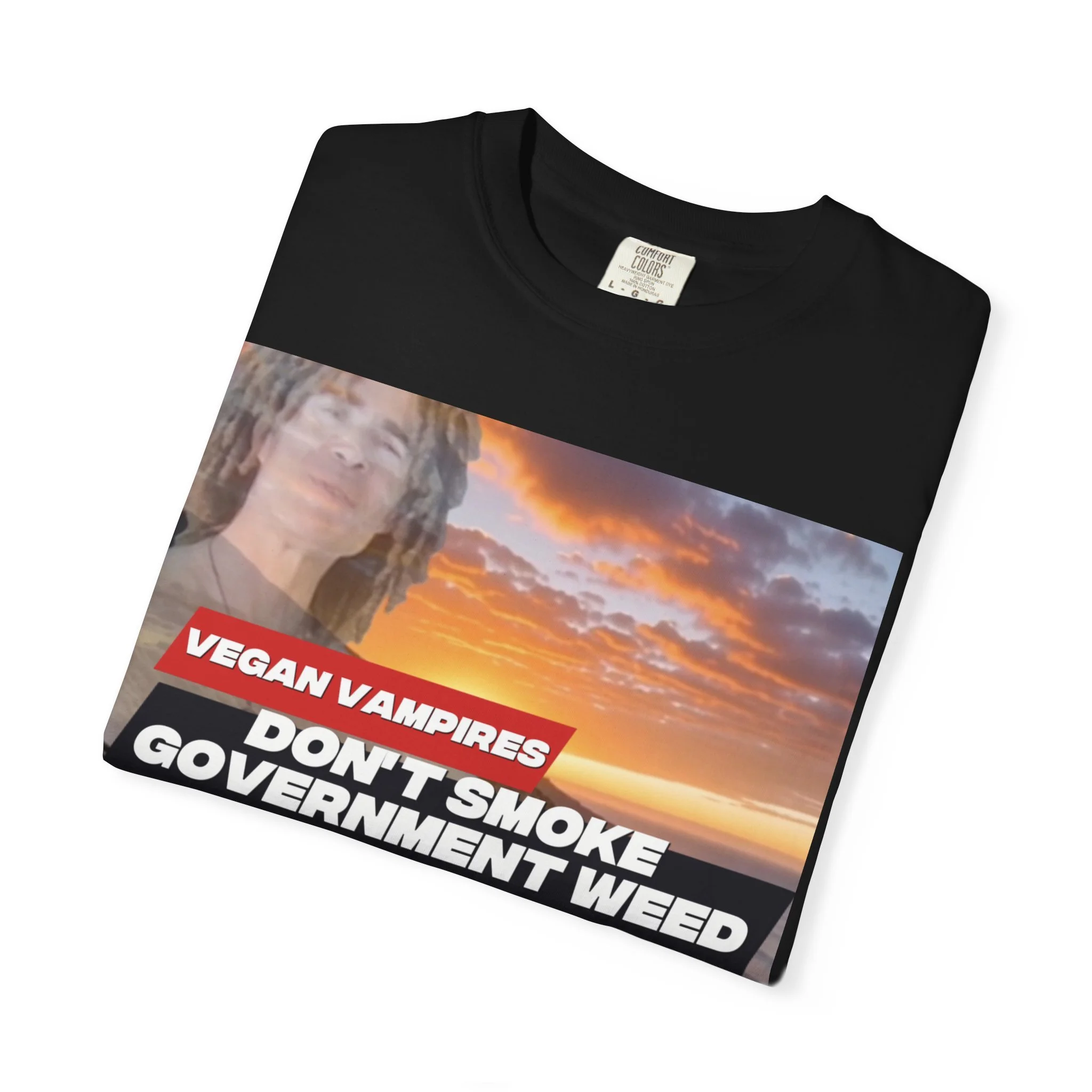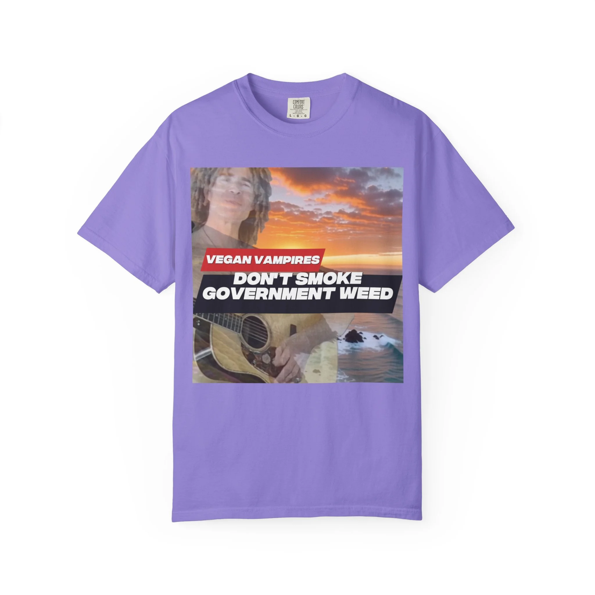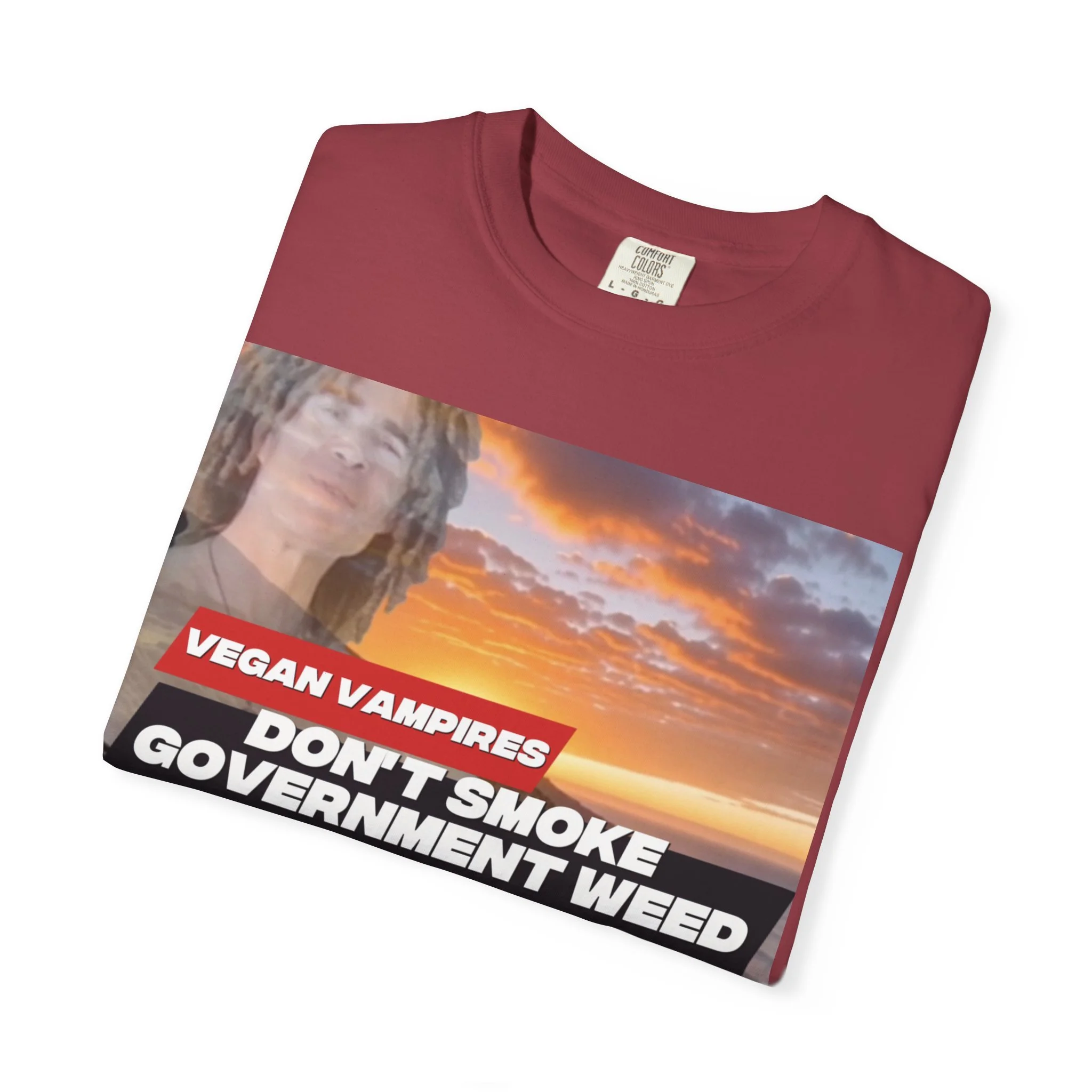 This heavyweight garment-dyed tee carries attitude and comfort in equal measure. The bold, retro-style graphic—bright red bar and white text over a confetti-like purple splash—reads like a rebellious slogan meant to be noticed. The relaxed fit and soft, washed-in color make it feel lived-in from day one. Wear it to late-night meetups, protest marches, small gatherings, or when you just want your opinion to be loud without sacrificing comfort. The stitched details and tubular knit give it a clean, timeless silhouette that pairs easily with jeans, layered flannels, or a worn-in jacket. It sits well in laid-back wardrobes and those who like their statements direct and a little edgy.