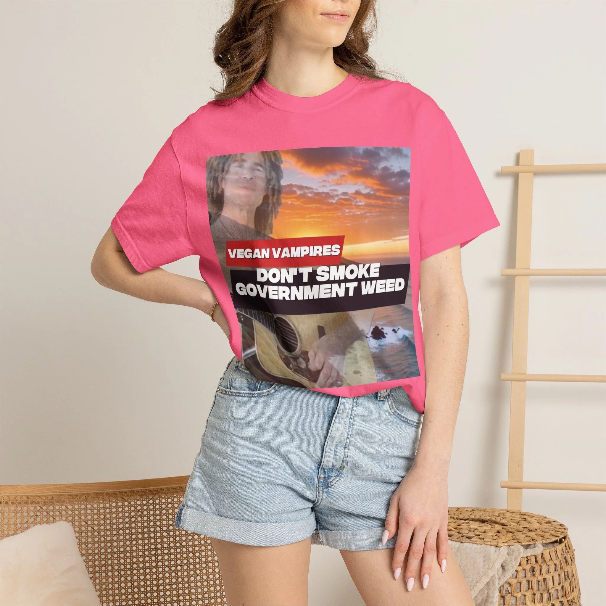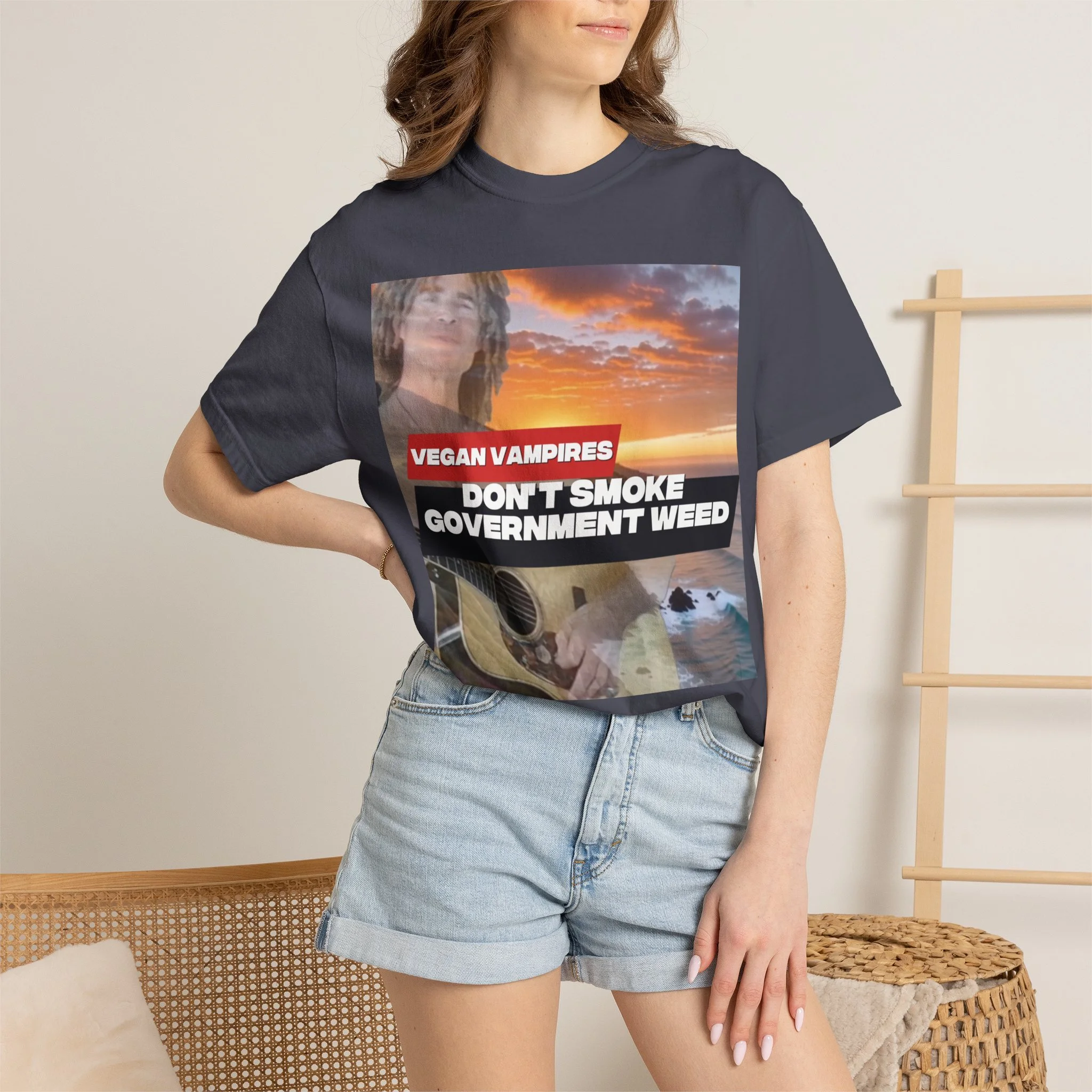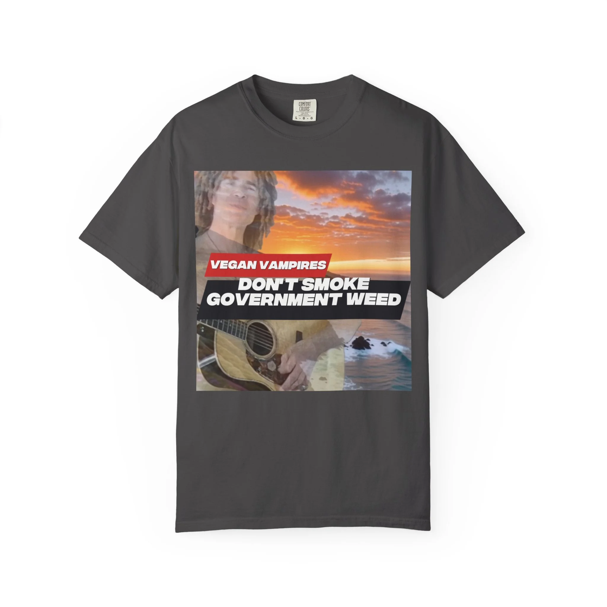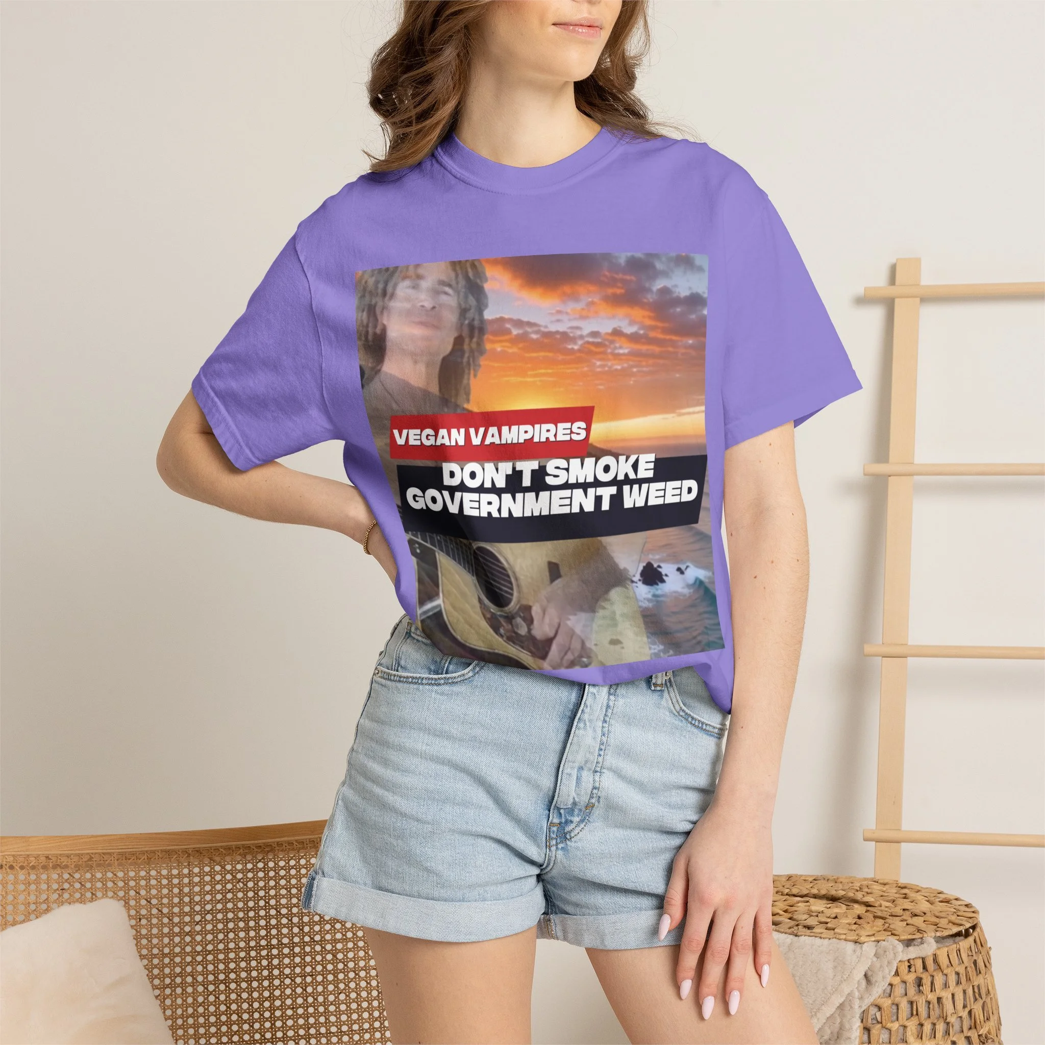 This heavyweight garment-dyed tee carries attitude and comfort in equal measure. The bold, retro-style graphic—bright red bar and white text over a confetti-like purple splash—reads like a rebellious slogan meant to be noticed. The relaxed fit and soft, washed-in color make it feel lived-in from day one. Wear it to late-night meetups, protest marches, small gatherings, or when you just want your opinion to be loud without sacrificing comfort. The stitched details and tubular knit give it a clean, timeless silhouette that pairs easily with jeans, layered flannels, or a worn-in jacket. It sits well in laid-back wardrobes and those who like their statements direct and a little edgy.